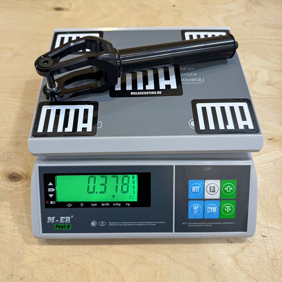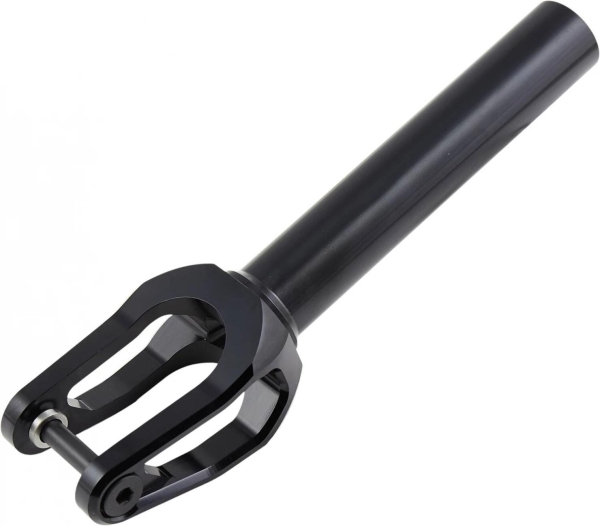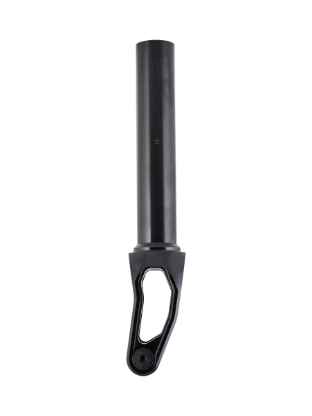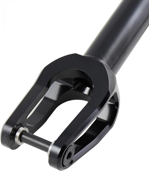 Топовая вилка Tilt для жесткого стрита. У вилки массивные фрезерованные ноги и ось, не выступающая за корпус. Такая ось не будет раскручиваться от того, что цепляет за что-то на гриндах или при падении. Вилка поддерживает колеса диаметром до 120мм и поставляется с переходниками под широкие 30мм колеса.