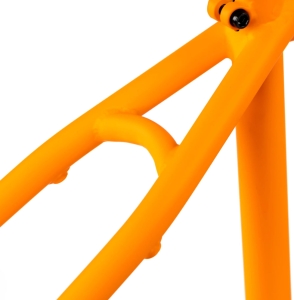 У рамы стэндовер 9,7 дюймов, что создает впечатление гораздо большей рамы и повышает устойчивость. Угол наклона рулевой 75,5°, а перья 13 дюймов. В производстве рамы специально отказались от технологии IC, чтобы сделать её доступнее и легче.